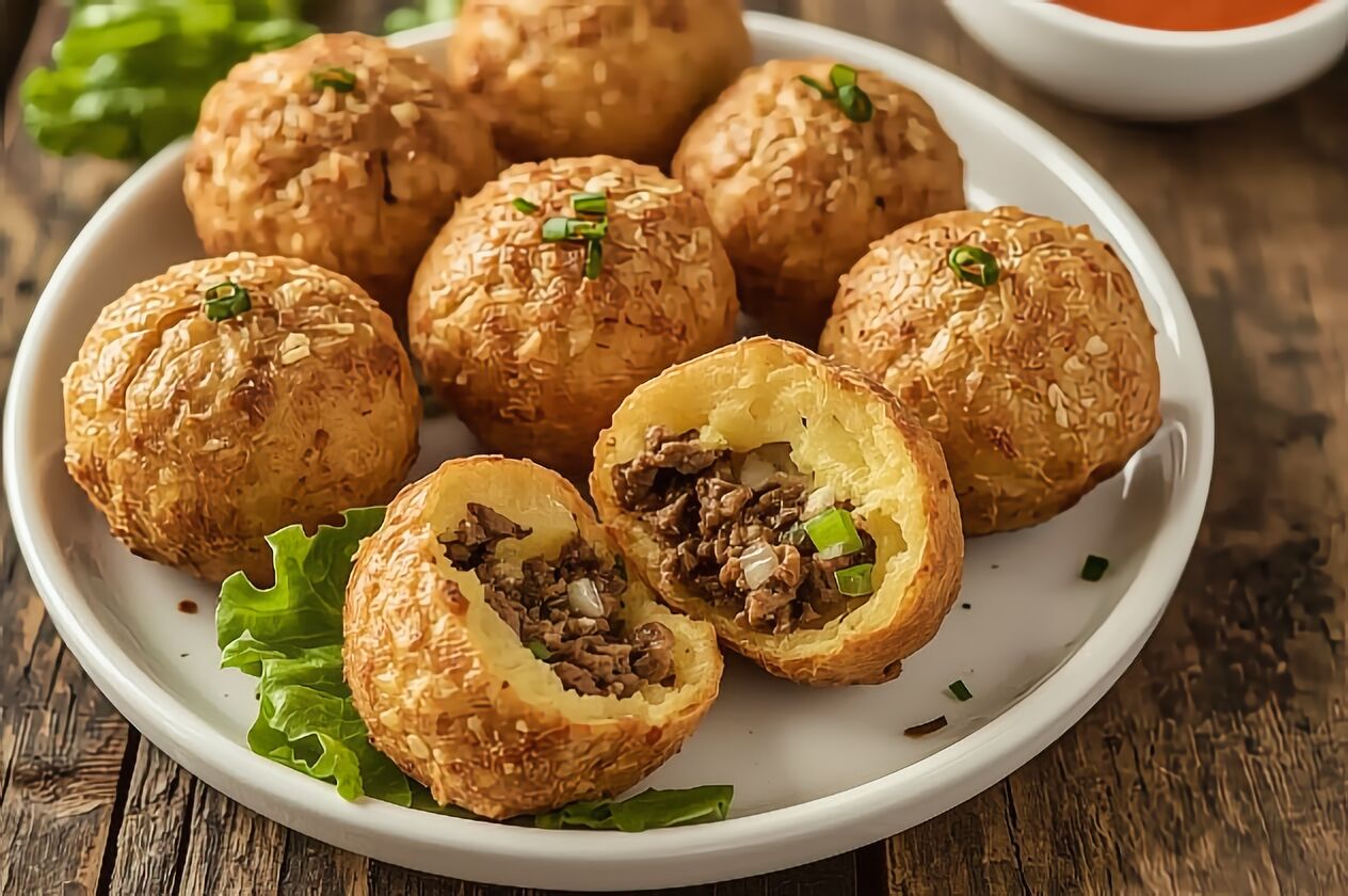 For the filling, go for soft, juicy meat mixed well with veggies and spices. If it’s too dry, the potato balls can crack open. Moisture is your friend here.