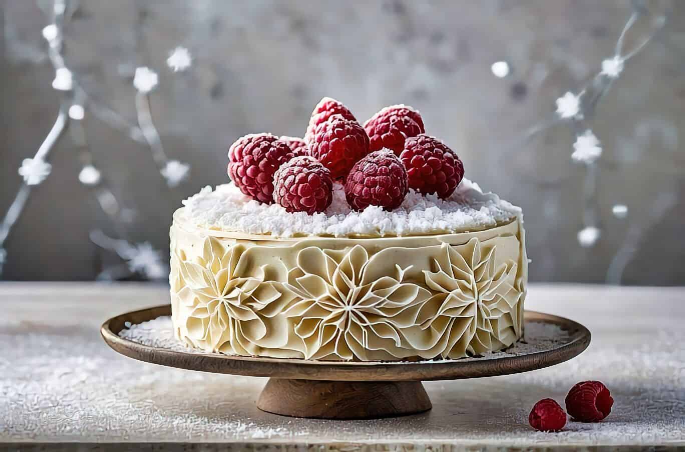 Snowflake Cake plays a key role, serving as the base. The lightness and beauty of the cake mirror the delicate nature of actual snowflakes. The addition of raspberries gives it a vibrant touch, both in taste and appearance.